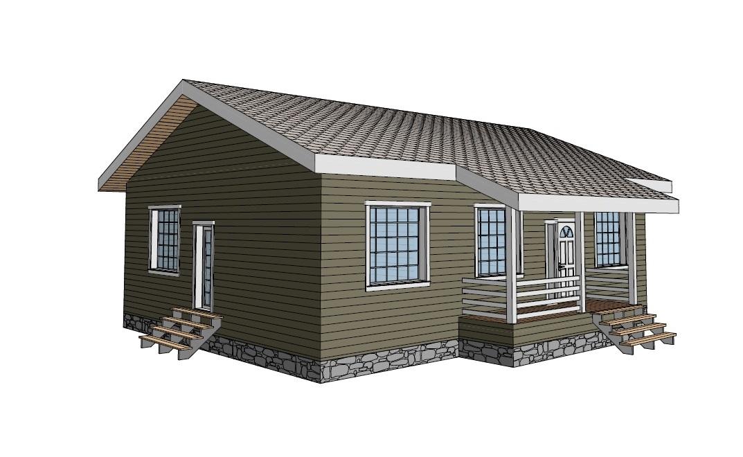 Одноэтажный дом площадью 102 кв.м. с 3 комнатами, большой кухней-гостиной, санузлом и котельной. Комплектация: Свайный фундамент Каркас из доски 50х150 + брусок 50х50 под перекрёстное утепление Утепление стен, цокольного и чердачного перекрытия 200 мм Наружняя отделка виниловым сайдингом Дёке Окна - двухкамерные стеклопакеты с профилем Veko Кровля из битумной черепицы Водосточная система Террасная доска из лиственницы Внутреняя отделка: Отделка стен гипсокартоном с покраской Подготовка черновых полов плитами ЦСП финишное покрытие Лаимнатом Инженерные системы: Монтаж электрики Монтаж отопления Монтаж водоснабжения Монтаж водоотведения